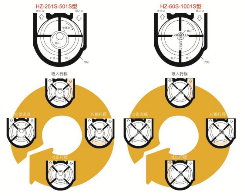 鼓風(fēng)機(jī)靠汽缸內(nèi)偏置的轉(zhuǎn)子偏心運(yùn)轉(zhuǎn),并使轉(zhuǎn)子槽中的葉片之間的容積變化將空氣吸入、壓縮、吐出。在運(yùn)轉(zhuǎn)中利用鼓風(fēng)機(jī)的壓力差自動(dòng)將潤滑油送到滴油嘴,滴入汽缸內(nèi)以減少摩擦及噪聲,同時(shí)可減少汽缸內(nèi)氣體的回流。